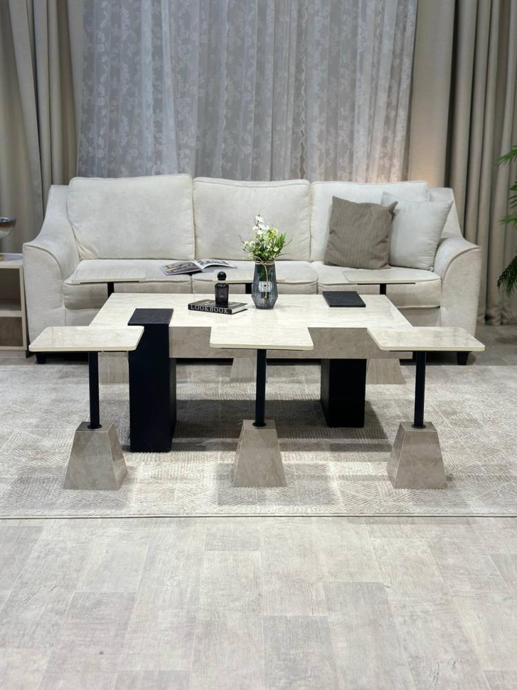 طقم طاولة كنب مع 6 قطع خدمة – بديل رخام من تودو