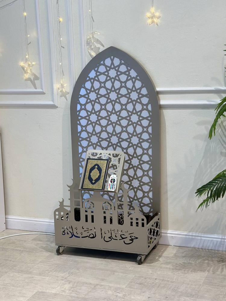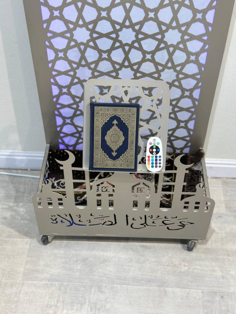 ستاند تعليق سجادة صلاة بكفرات حديد مع حامل مصحف