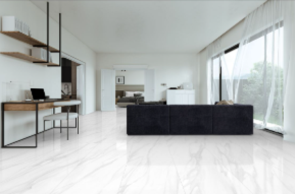 الأرضيات: يمكن استخدام بلاط البورسلان في الأرضيات، خاصة في الأماكن التي تتطلب لمسة من الفخامة والرقي.