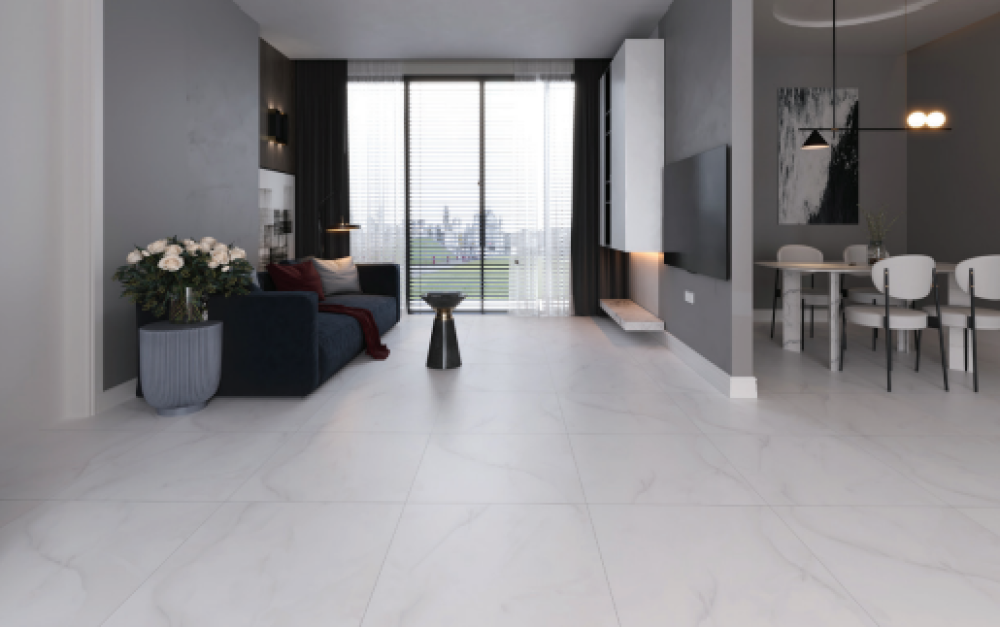 الأرضيات: يمكن استخدام بلاط البورسلان في الأرضيات، خاصة في الأماكن التي تتطلب لمسة من الفخامة والرقي.