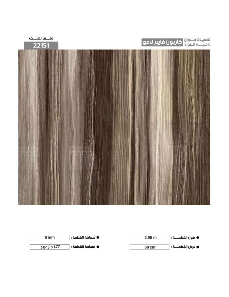 تكسيات جدران داخلية شيبورد عازل للصوت :تكسيات داخلية كاربون فايبر لامع تركب بنظام كلكطول القطعة : 295سمعرض القطعة : 60 سمسماكه القطعة : 8 سمضد الماءمقاوم للرطوبةيمكن غسلهمقاوم للاشتعال