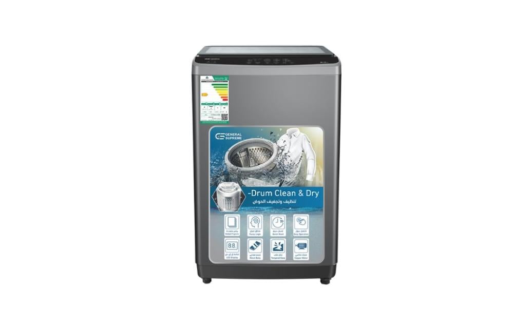 جنرال سوبريم غسالة اوتوماتيك تعبئه علوية 8 كيلو، 8 برنامج , فضي غامق, GSTL08T25ST