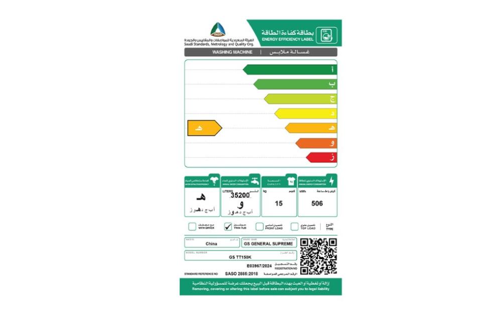 جنرال سوبريم غسالة نصف اوتوماتيك حوضين 15 كيلوأبيض/أزرق