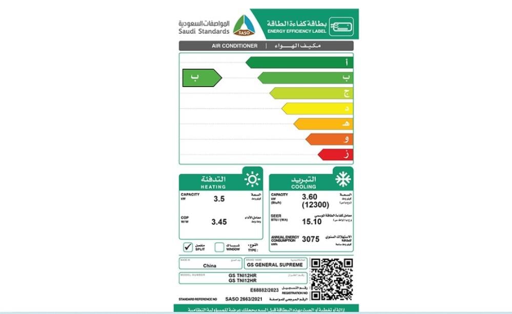 جنرال سوبريم مكيف سبليت تيتانيوم انفيرتر 12,300 وحدة، حار/بارد
