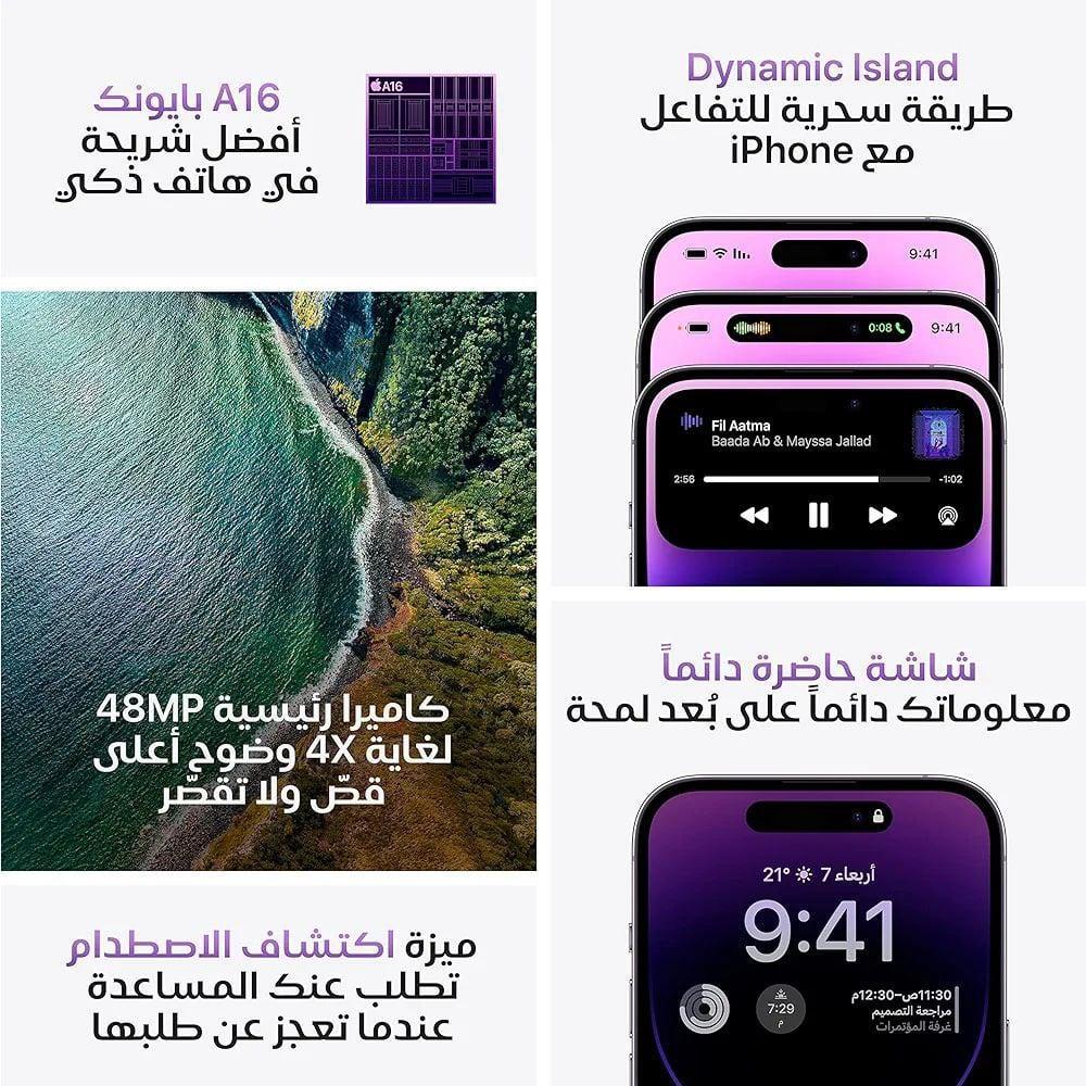 احصل على تجربة استخدام غير مسبوقة مع ايفون ١٤ برو بنفسجي من أبل، بسعة تخزين 256 جيجا بايت، وتصميم أنيق بلون ليلكي عميق يلفت الأنظار.