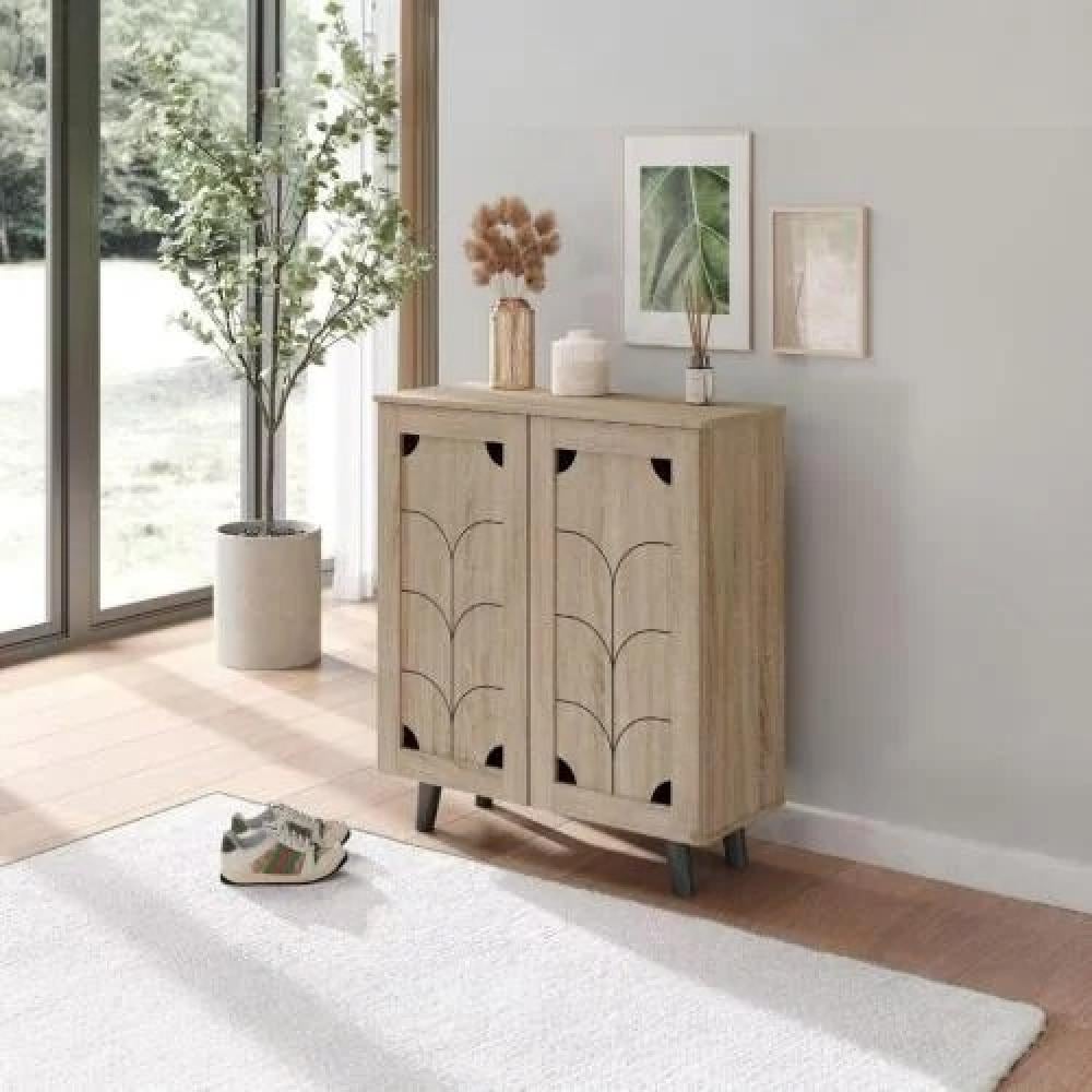 دولاب أحذية خشب بيج 2 أبواب – تصميم أنيق وعملي