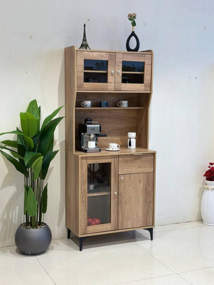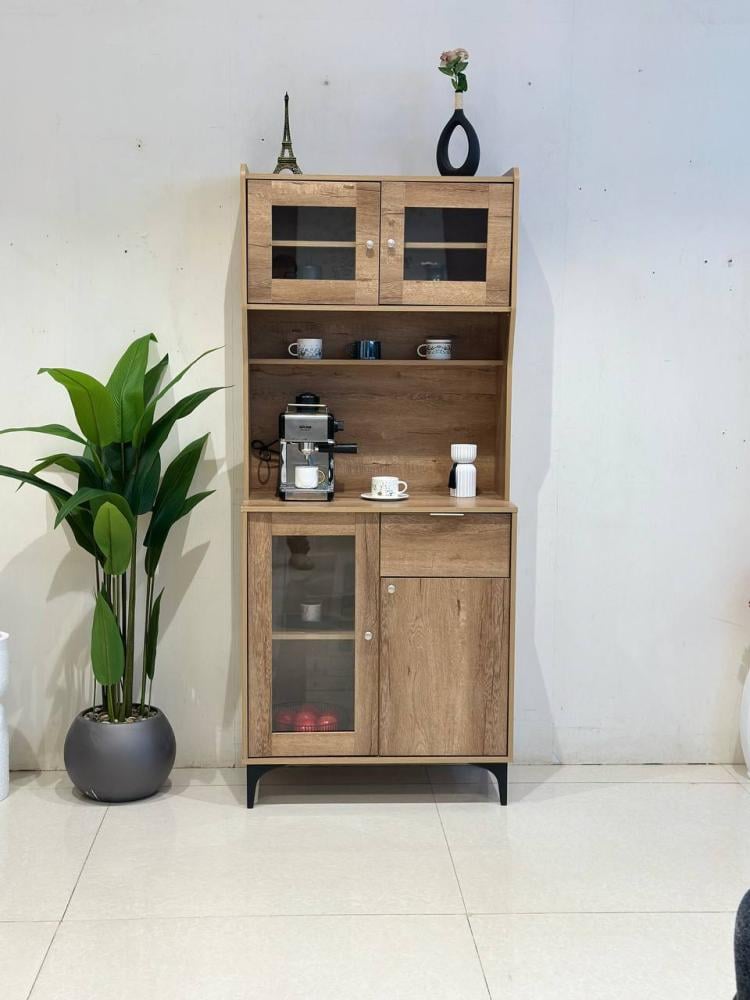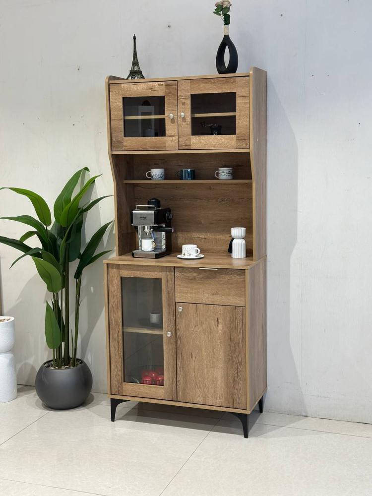 تصميم عملي وعصري يناسب المساحات الصغيرة والكبيرة، مصنوع من الخشب البني الطبيعي أو الصناعي عالي الجودة. يحتوي على بابين جانبيين للتخزين، بالإضافة إلى جزء دوّار في المنتصف لسهولة الوصول إلى أدوات القهوة أو الإكسسوارات.