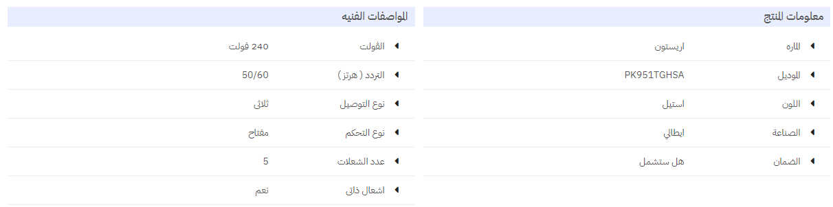 سطح بلت ان غاز اريستون 5 عيون 90 سم