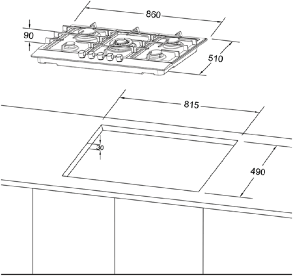 سطح بلت ان غاز ميديا ​​5 عيون 90 سم استيل