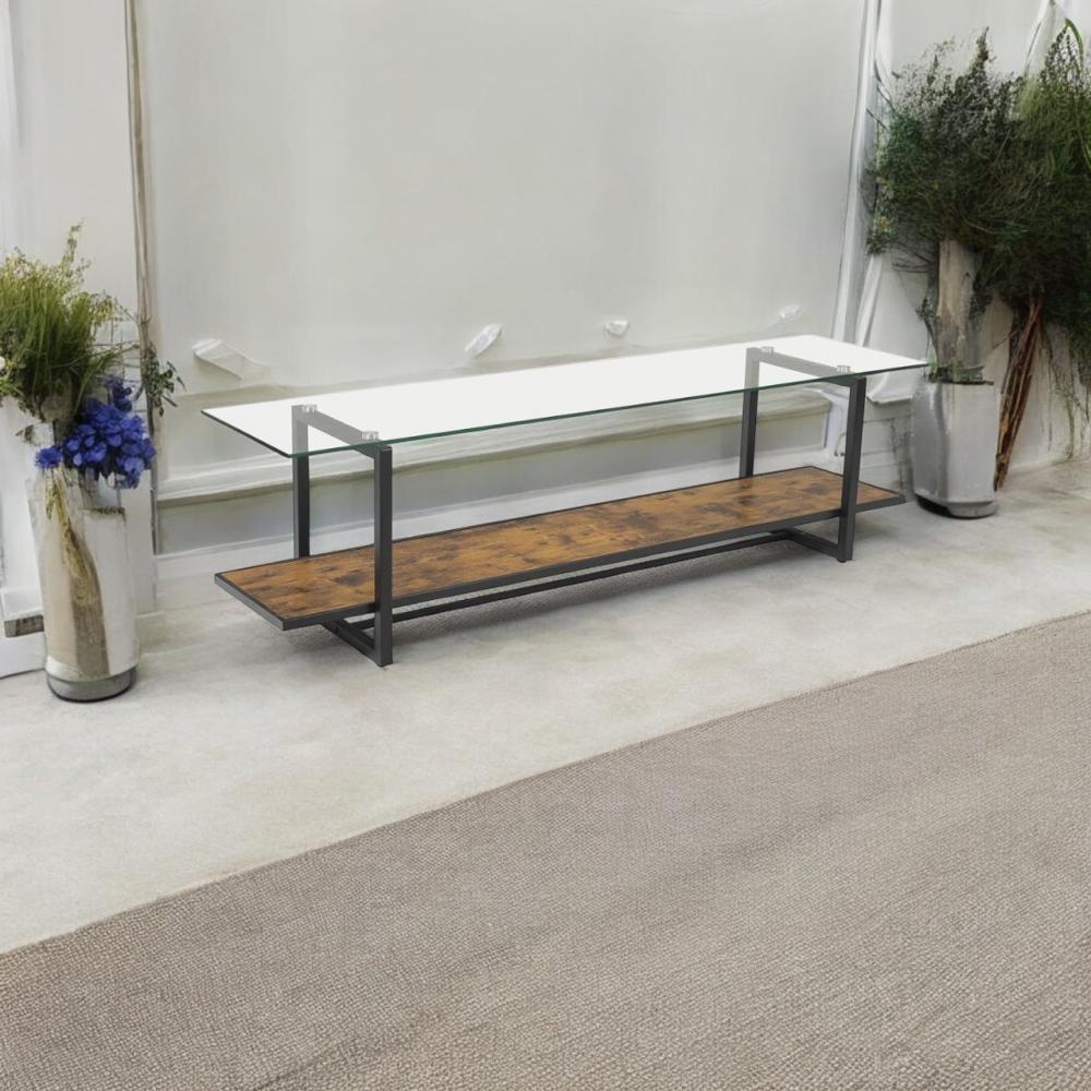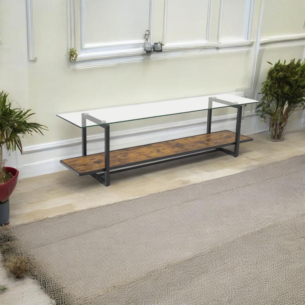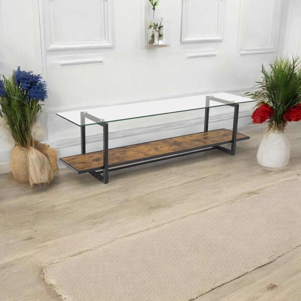 تتميز هذه الطاولة بإطار خشبي متين وسطح زجاجي أنيق، مما يجعلها الخيار المثالي لتقديم دعم آمن لأجهزة التلفزيون مع لمسة من الفخامة.