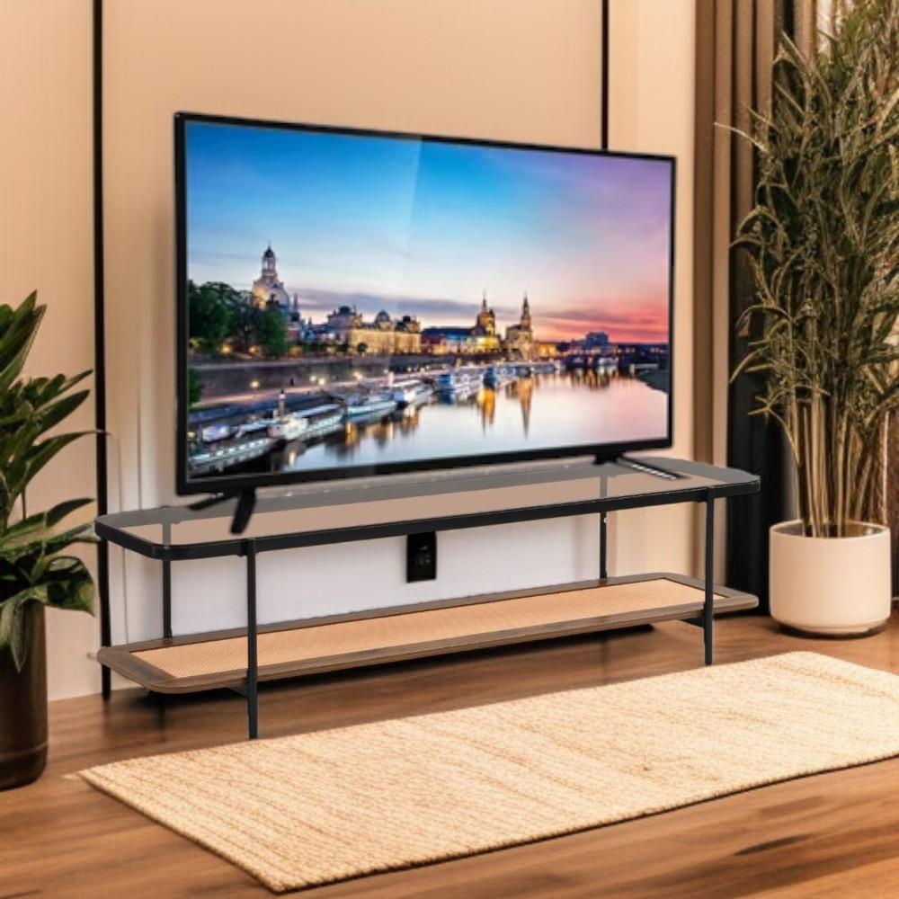 تم تصميم الطاولة بعناية لتوفر مزيجًا متوازنًا من الجمال والعملية؛ فهي لا تعمل فقط كقاعدة أنيقة للتلفاز، بل أيضًا كقطعة ديكور تضيف لمسة راقية لغرفة المعيشة.