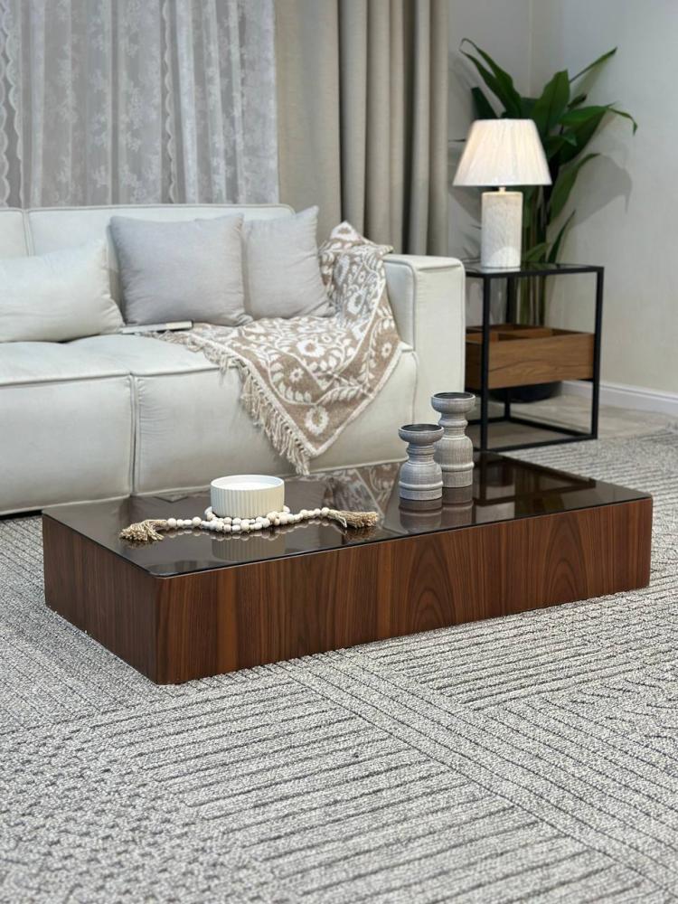 طاولة ضيافة ارضي قشرة جوز الهند سطح زجاج :