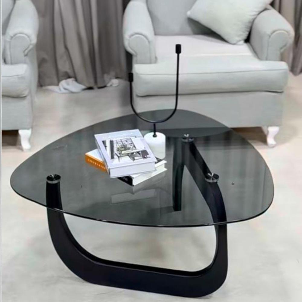السطح الزجاجي الأسود يعكس الإضاءة بشكل جميل ويمنح إحساسًا بالفخامة، بينما تضيف القاعدة الخشبية السوداء ثباتًا وأناقة متكاملة، مما يجعلها مثالية لتقديم الضيافة أو لتزيين المساحات الراقية.