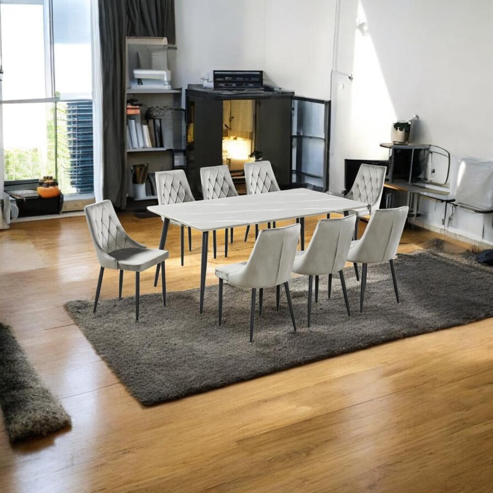 وصف المنتج: طاولة طعام بسطح بديل الرخام مع 8 كراسي