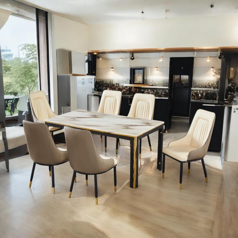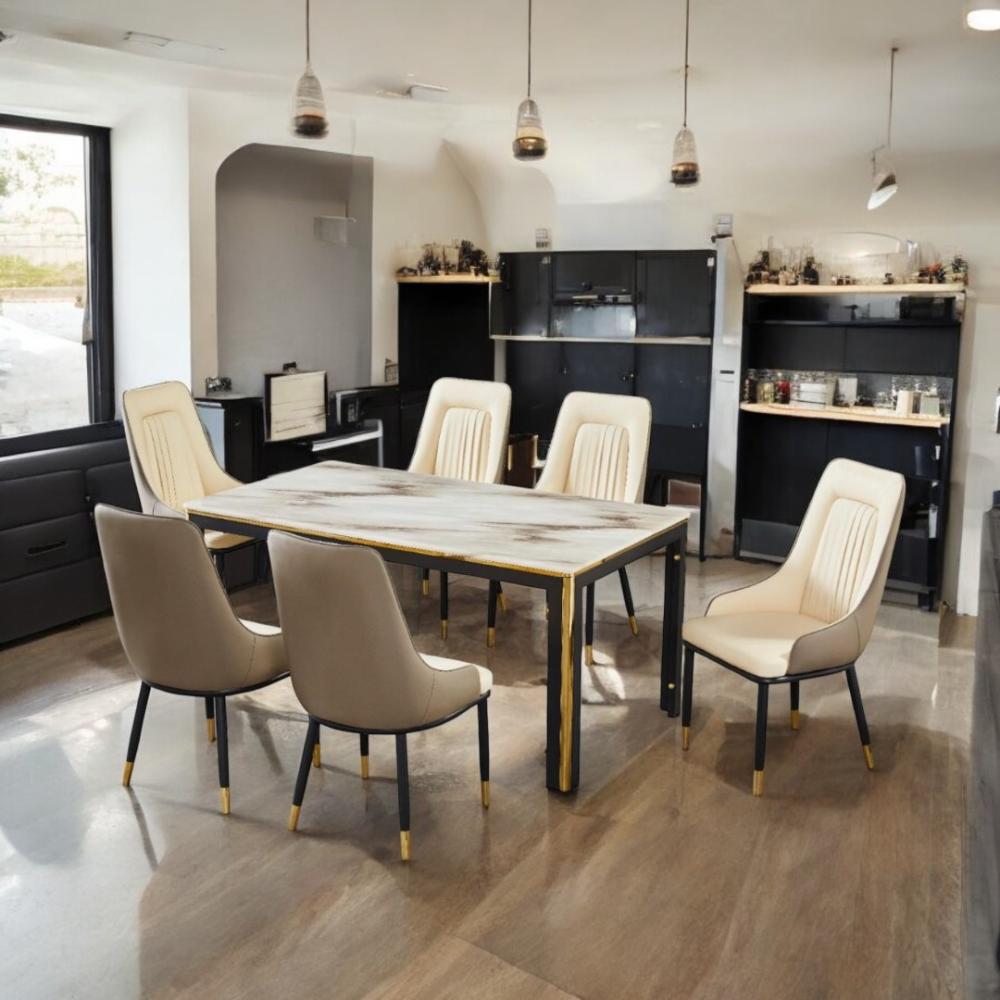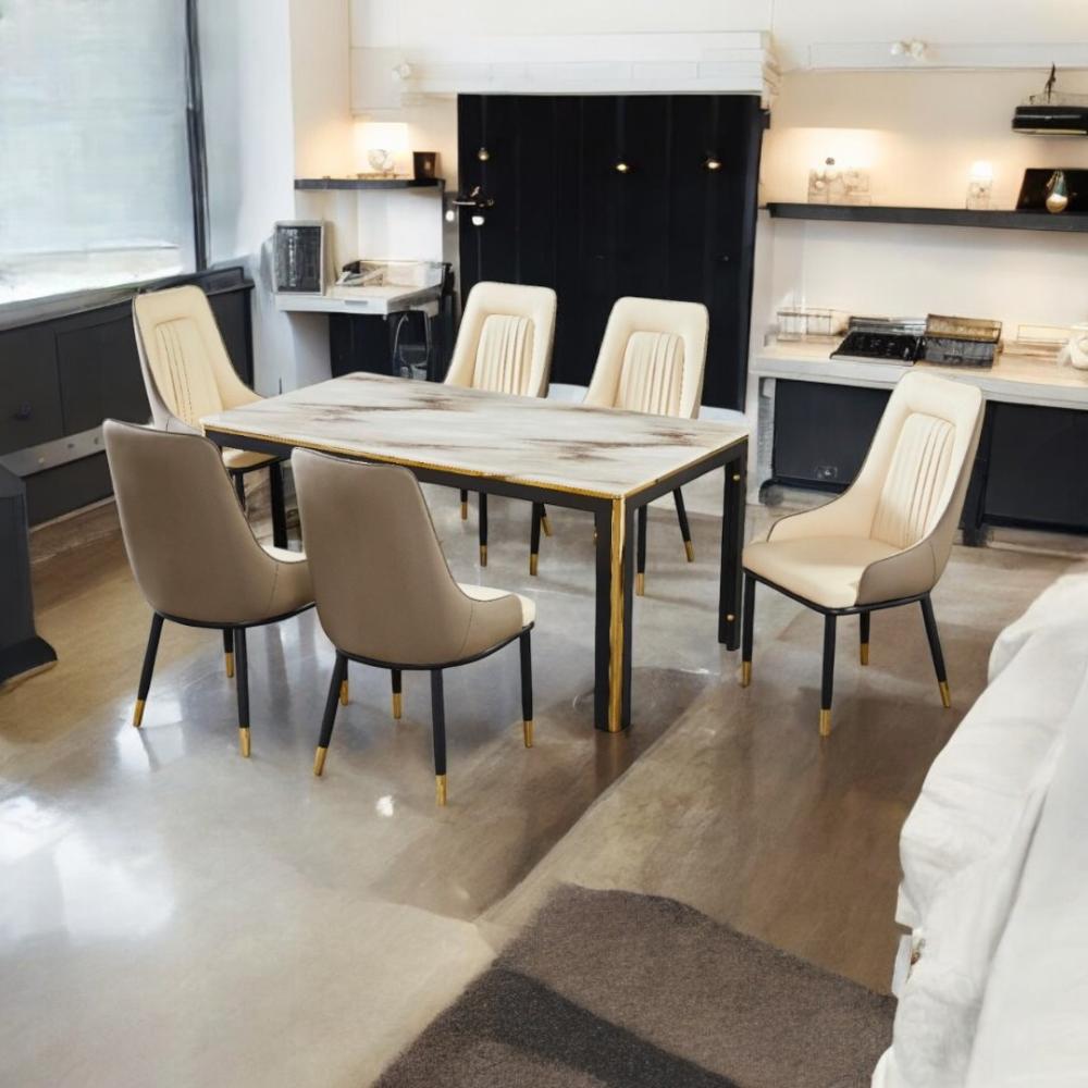 طاولة طعام سطح رخام مع 6 كراسي أنيقة