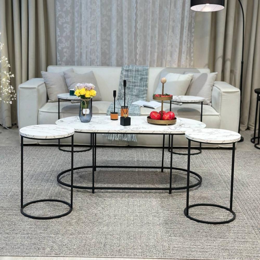 طقم طاولات بيضاوي سطح خشب شكل سيراميك مع 4 خدمة :