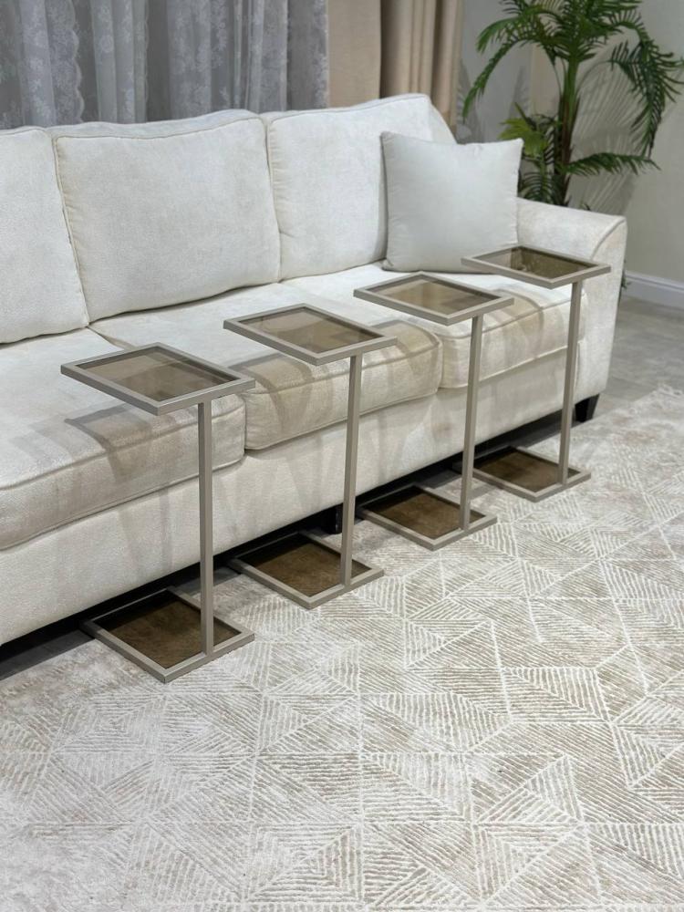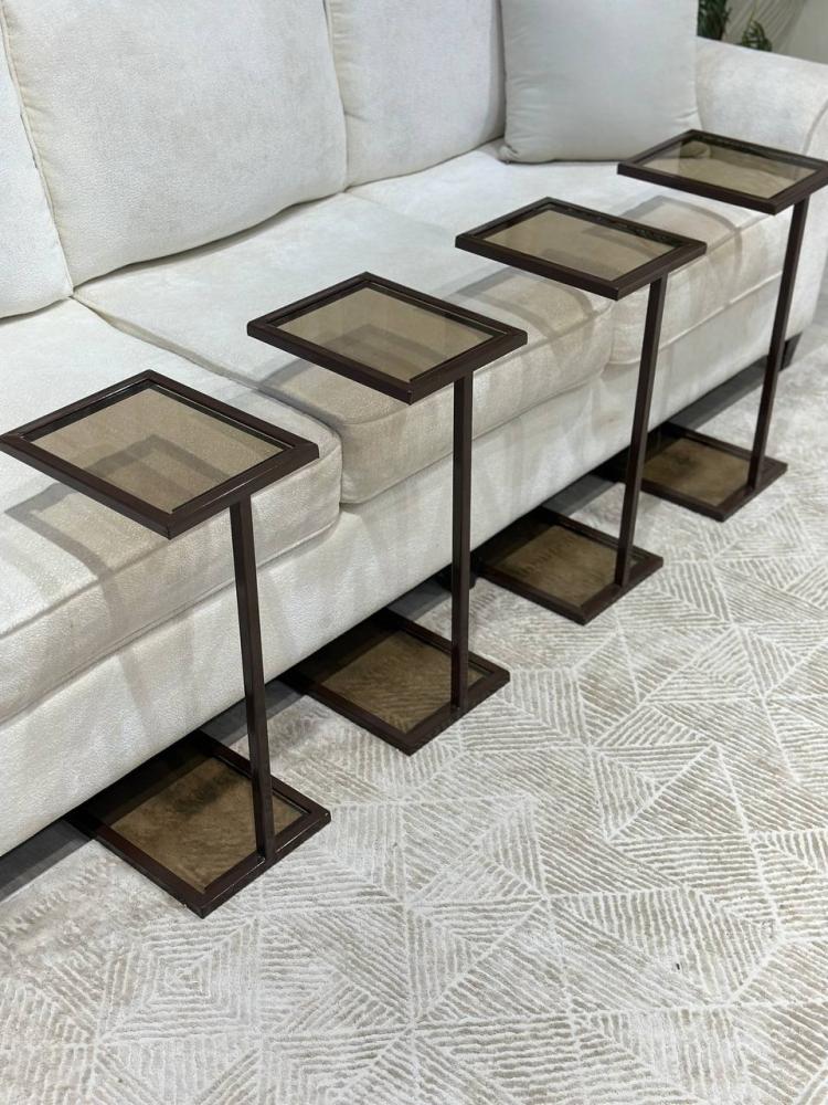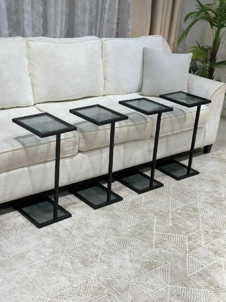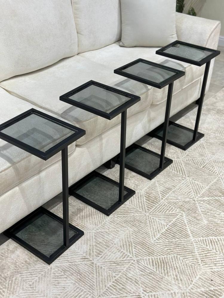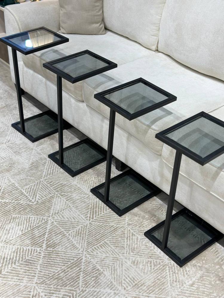 طقم طاولات خدمة دورين – زجاج أسود فاخر (4 قطع)