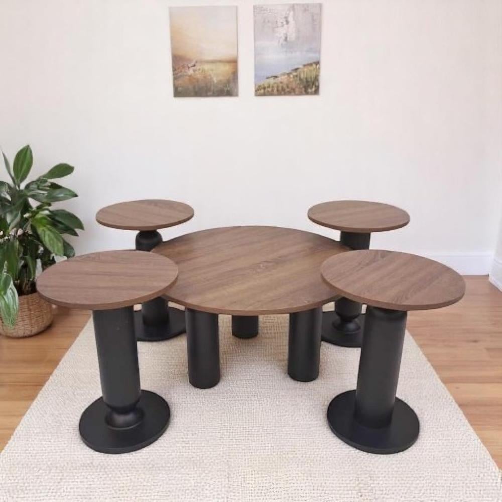 - طقم متكامل: يتكون من طاولة مركزية و 4 طاولات جانبية لتلبية مختلف الاحتياجات.