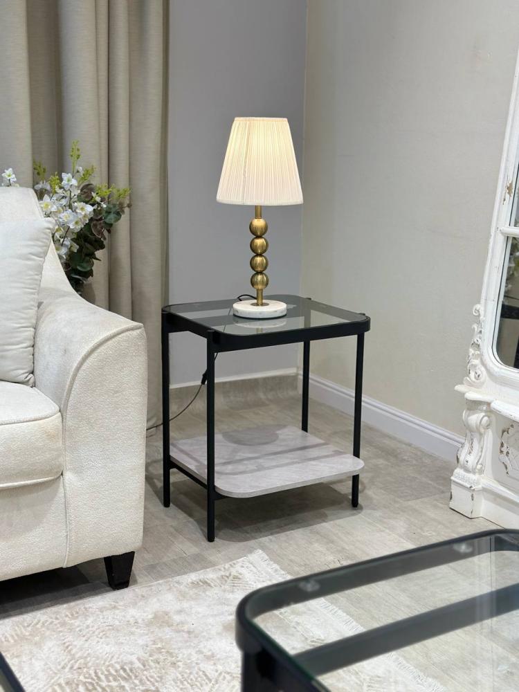 تعتمد الطاولات على قواعد حديد متينة باللون الأسود تعزز من ثباتها وتضفي طابعاً صناعياً أنيقاً على الديكور.