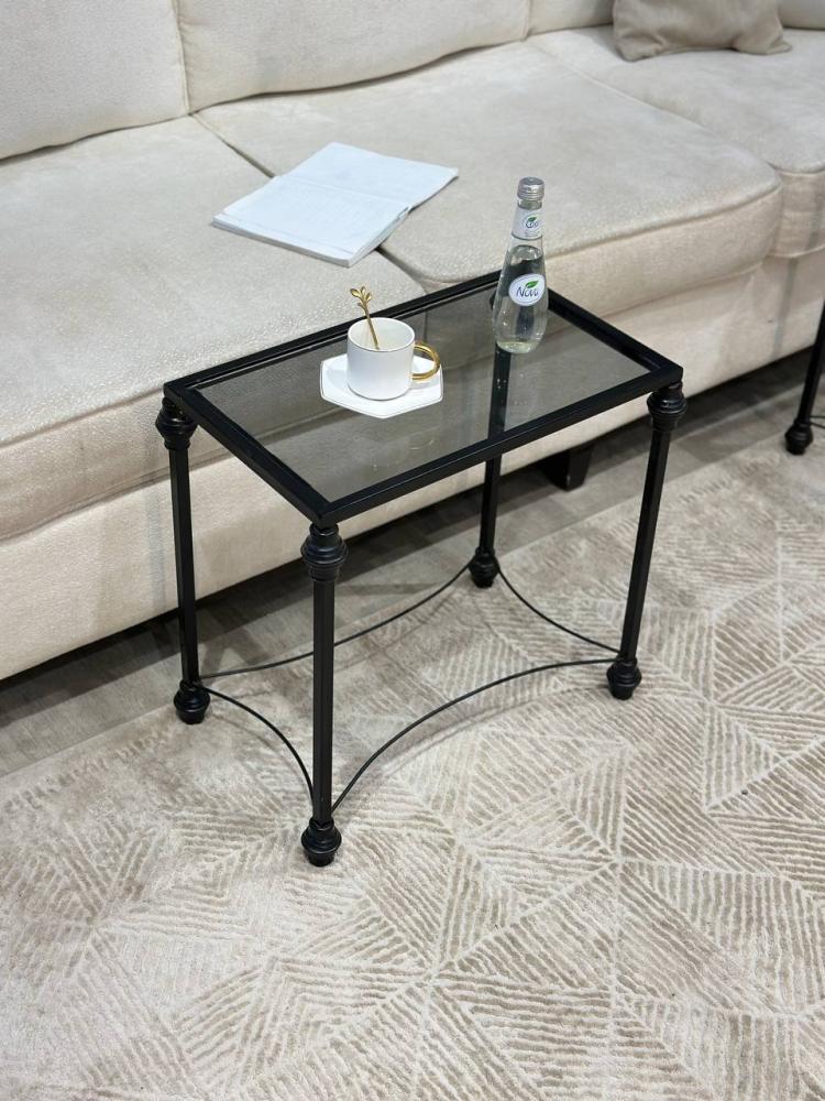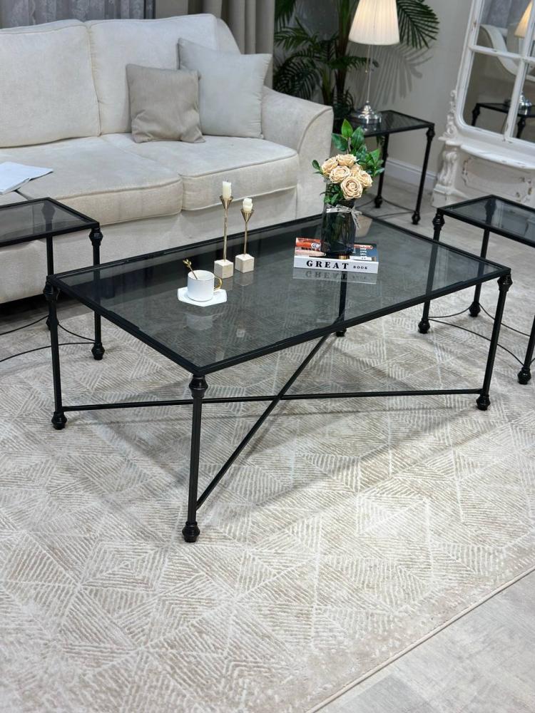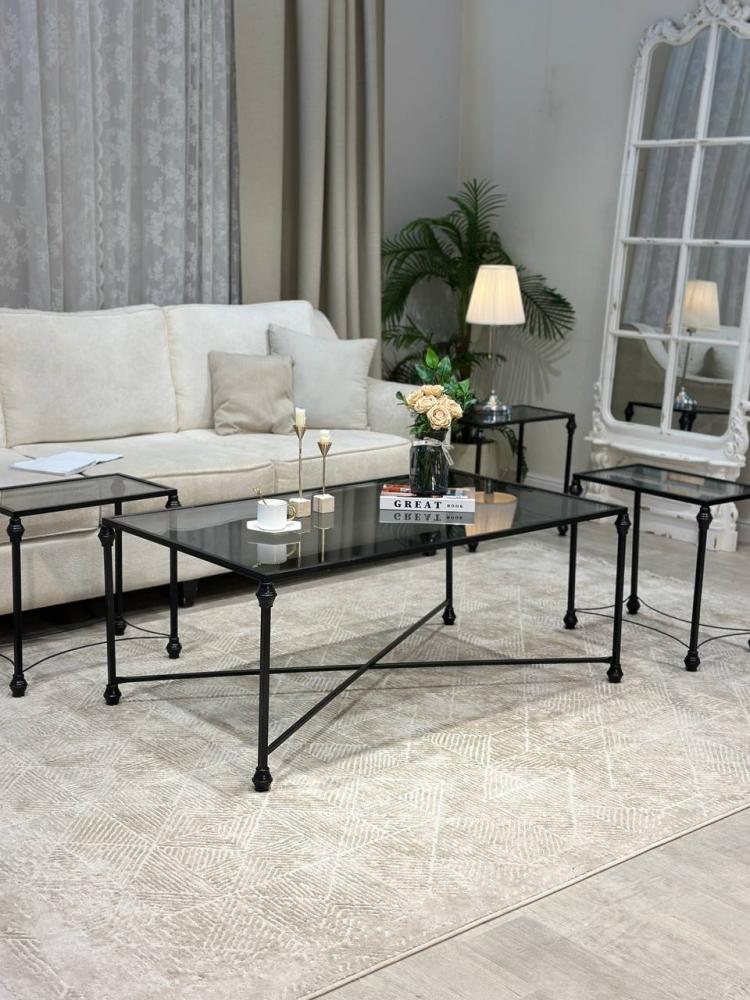 - سطح الطاولات مصنوع من زجاج أسود شفاف يمنح مظهراً راقياً وعصرياً.