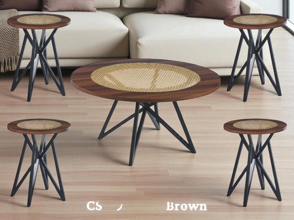 طقم طاولات ضيافة خشب مع راتان مع 4 خدمة