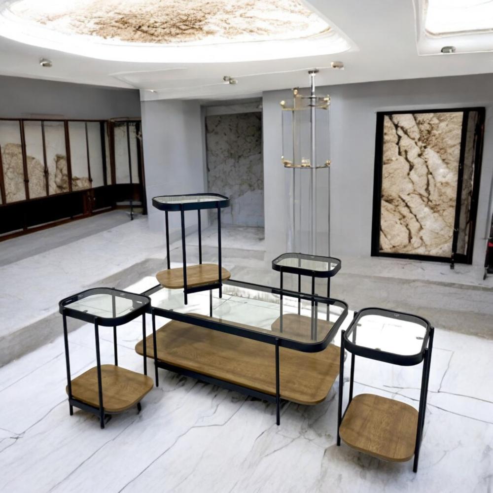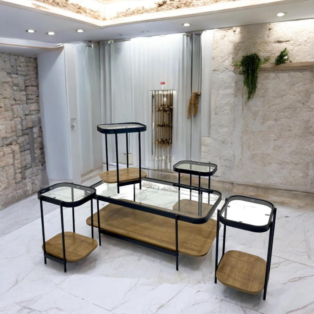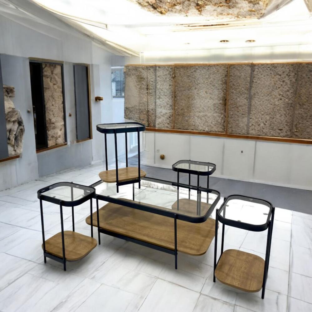 طقم طاولات ضيافة دورين خشب سطح زجاج شفاف 4 خدمة هو مجموعة من الطاولات التي تم تصميمها لتلبية احتياجات الاستخدام اليومي في المنازل والمكاتب، مع توفير لمسة جمالية أنيقة. وفيما يلي وصف ومميزات هذا النوع من الأطقم: