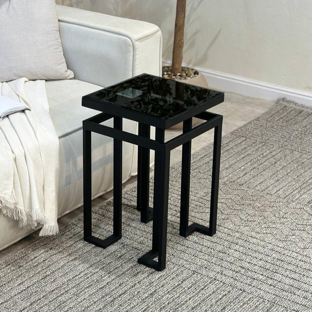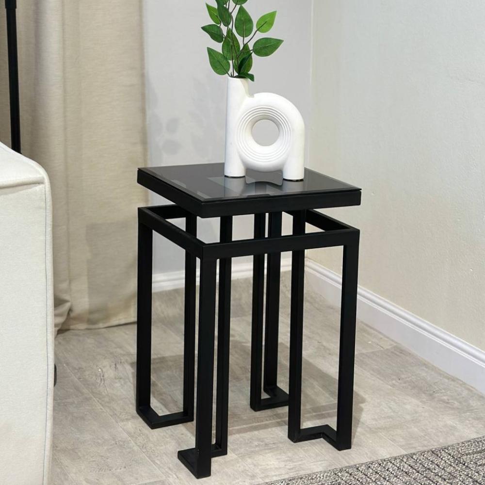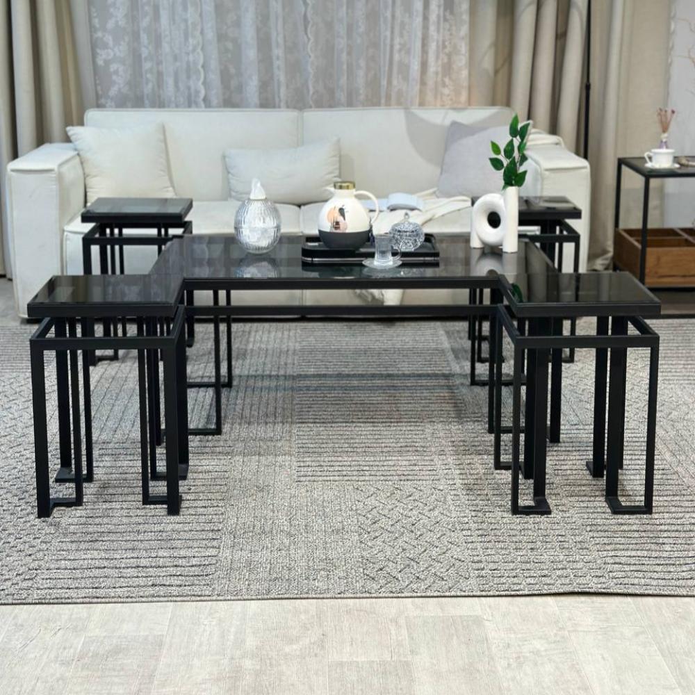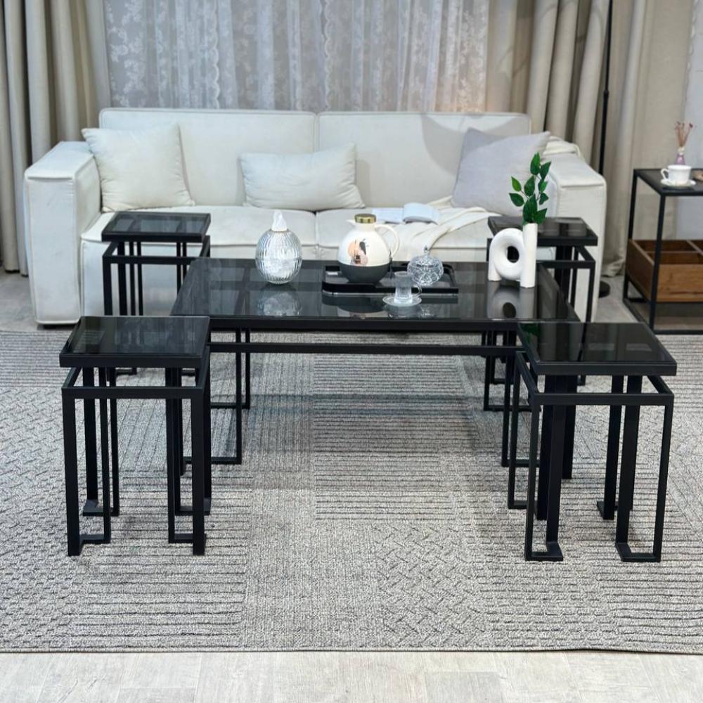 طقم طاولات ضيافة لون أسود مع 4 خدمة :