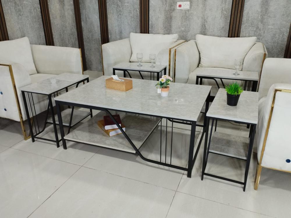 طقم طاولات بتصميم هندسي عصري يجمع بين المتانة والأناقة،