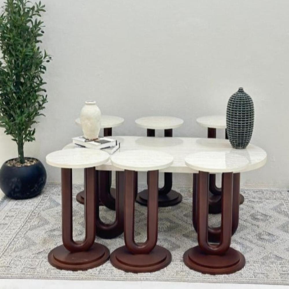 طقم طاولات 7قطع سطح بديل الرخام ملمس ناعم قاعده خشب لون بني