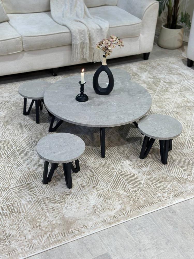 طقم طاولات أرضية 4+1 – خشب رمادي أنيق
