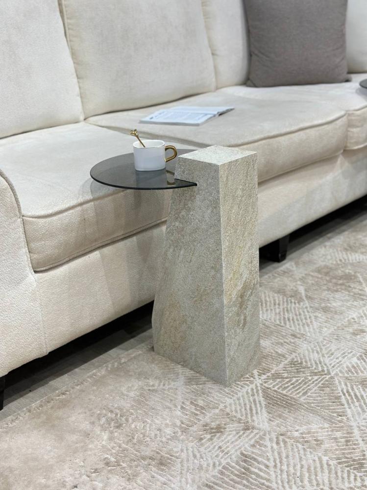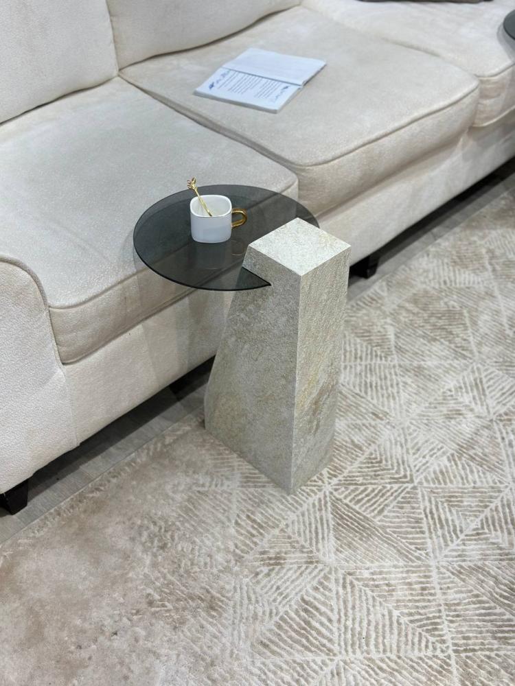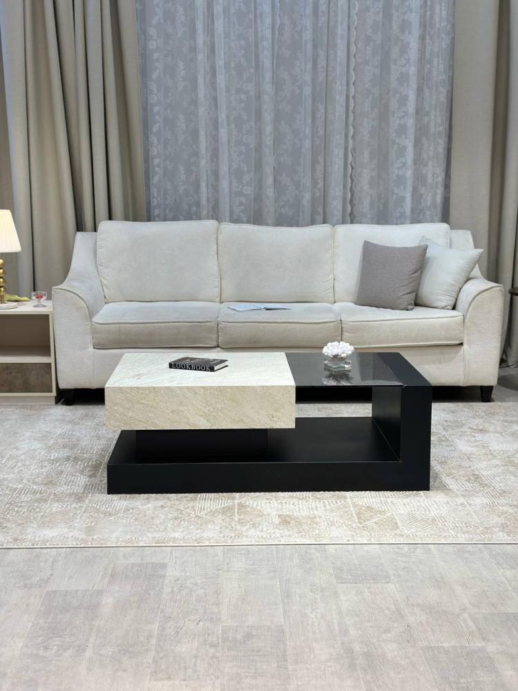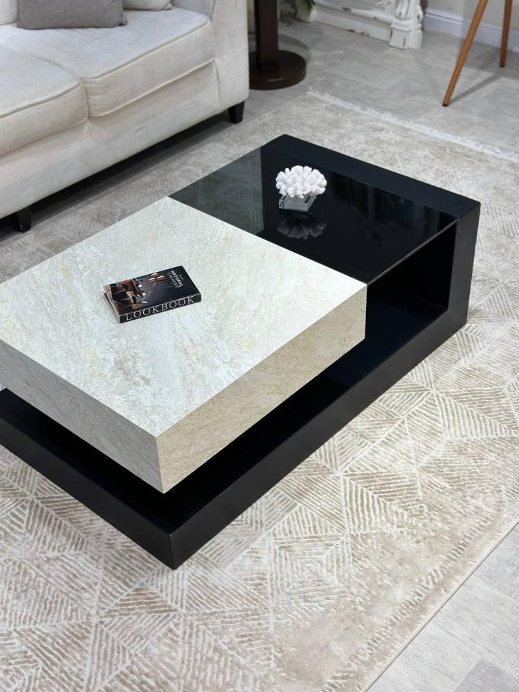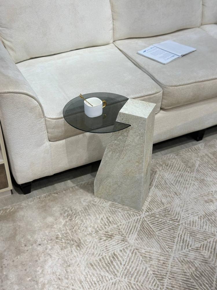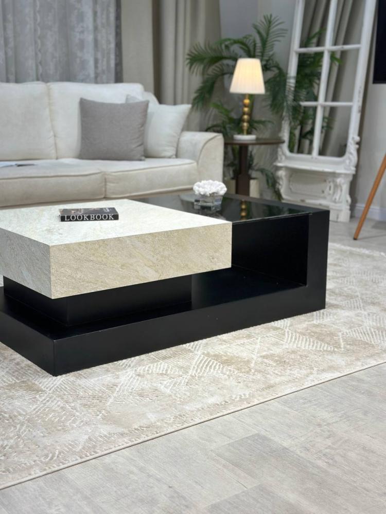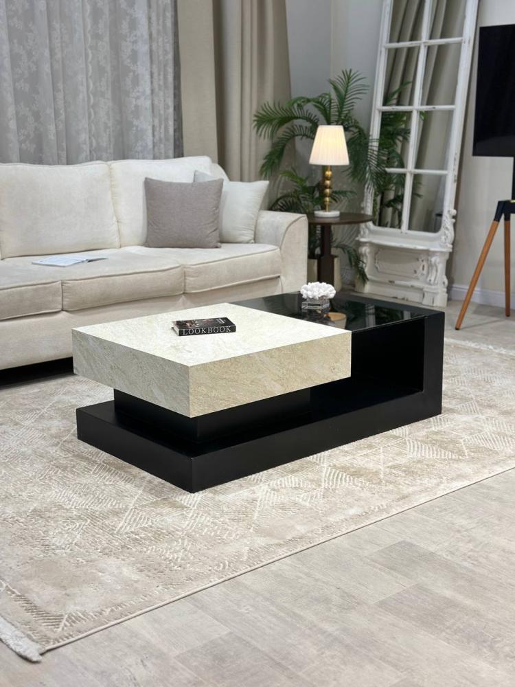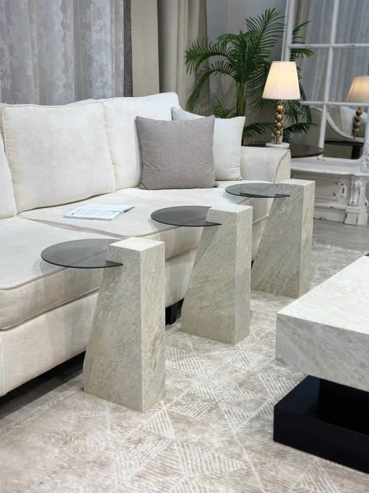 طاولات الخدمة تأتي بسطح زجاج أسود أنيق مع قاعدة بديل رخام كاملة، لتكون مثالية لتقديم الضيافة بأناقة.