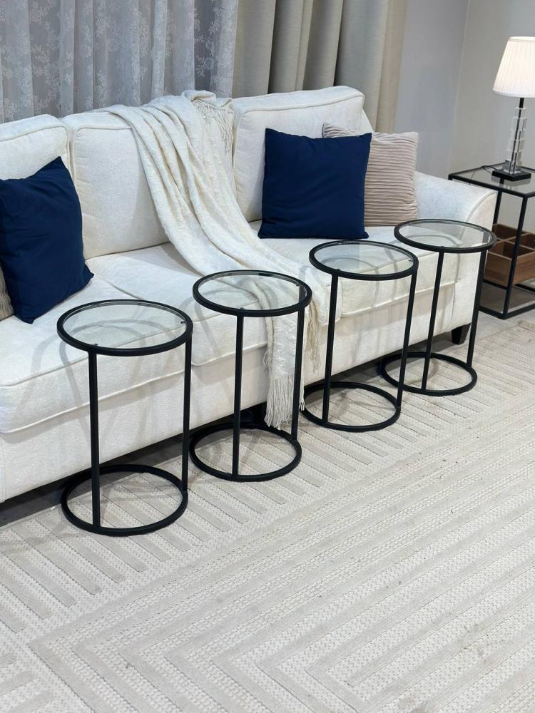 مواصفات طقم طاولة خدمة حديد أسود زجاج شفاف (4 حبات):1. التصميم: