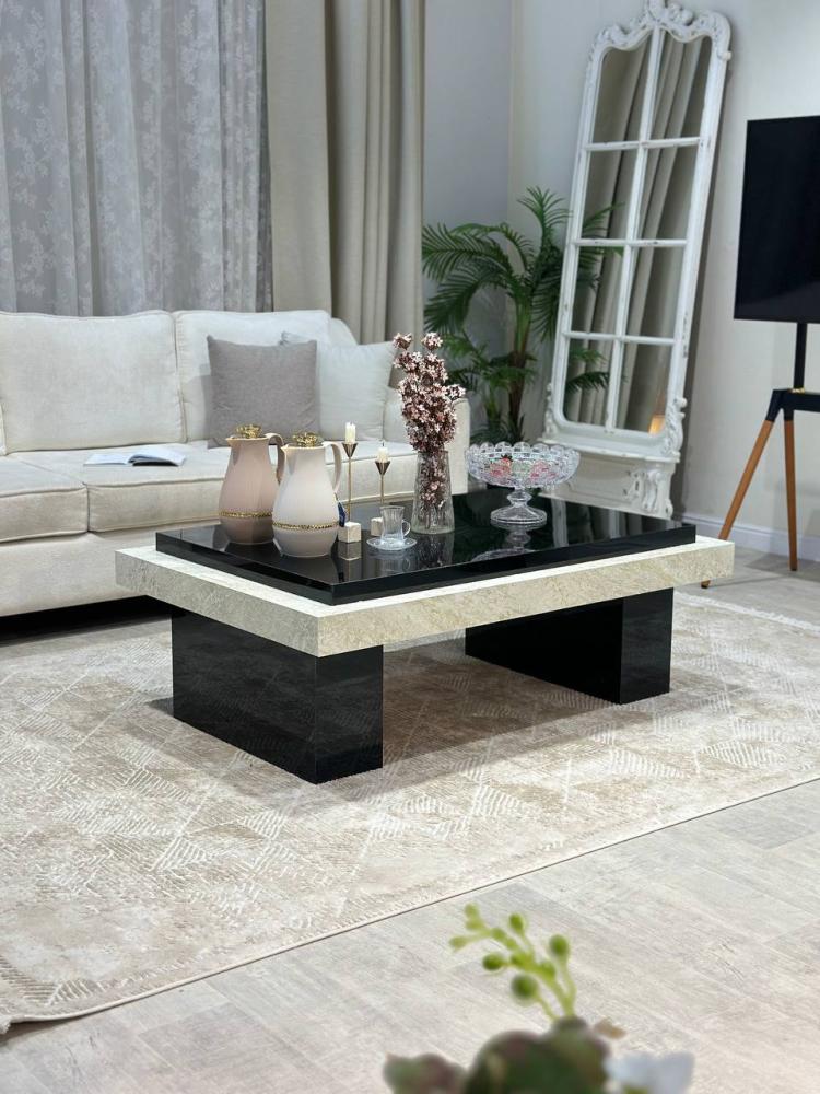 أضف لمسة من الفخامة والدفء إلى مجلسك مع طاولة الضيافة المميزة من تودو، المصنوعة من خشب السنديان الصلب بلونه الأسود الأنيق، والمزينة بحزام من بديل الرخام يمنحها طابعًا عصريًا راقٍ.
