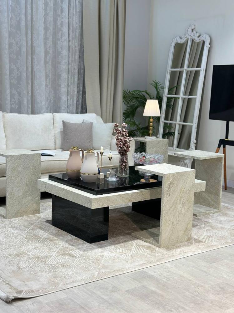 طقم طاولة ضيافة بتفاصيل رخامية – فخامة طبيعية من تودو