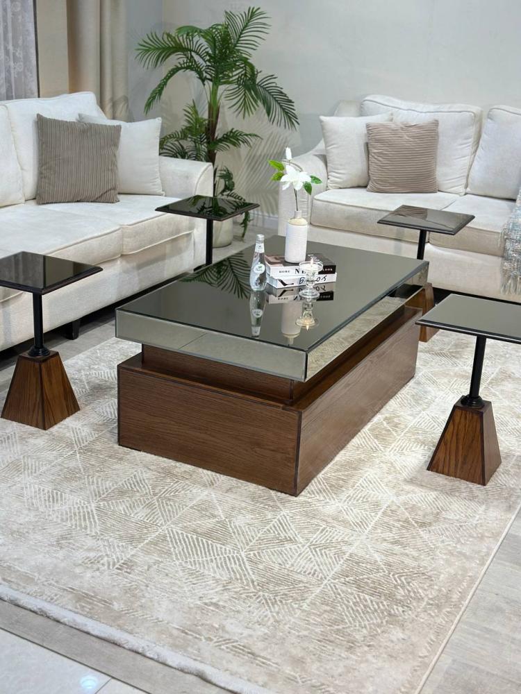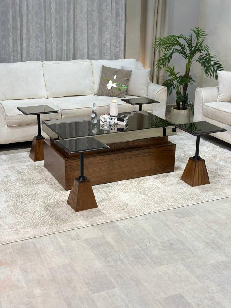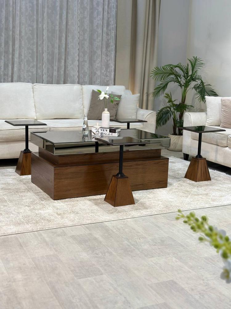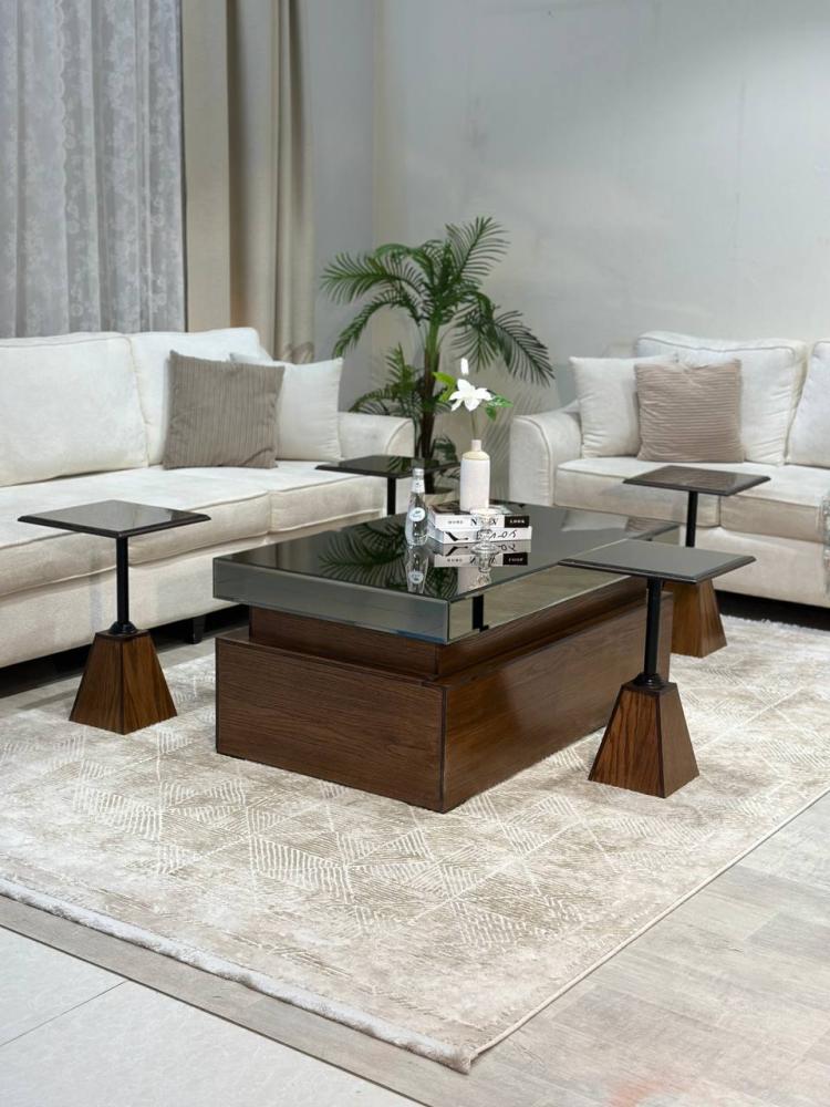 طقم طاولة ضيافة أضف لمسة من الفخامة والراحة إلى منزلك مصمم بعناية يأتي مع 4 طاولات خدمة إضافية، مصنوعة من الخشب البني الفاخر تصميمها الأنيق والجذاب يجعلها الخيار المثالي لاستقبال الضيوف وتقديم الطعام والمشروبات بشكل مريح وعملي.