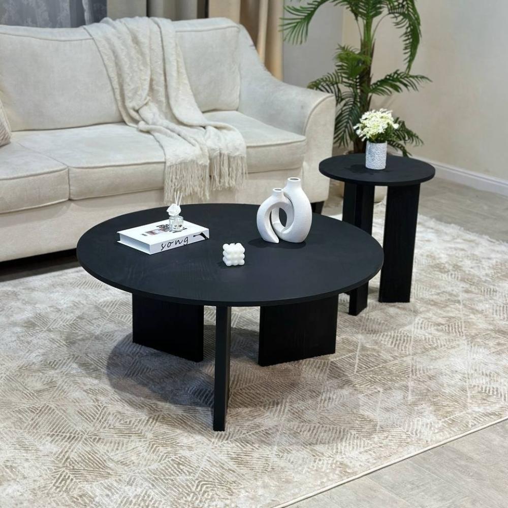 طقم مكوّن من طاولتين متداخلتين مصنوعتين من خشب السنديان عالي الجودة، باللون الاسود الطبيعي. يتميز التصميم بطابع عصري أنيق يضفي لمسة دافئة وفاخرة على أي مساحة داخلية.