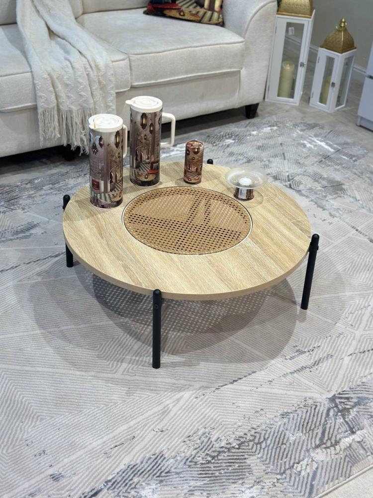 - الراتان الطبيعي : لمسة الراتان تضيف جانباً طبيعياً وعصرياً للطاولة، مما يمنحها مظهراً مميزاً يتناسب مع الأثاث التقليدي أو العصري.
