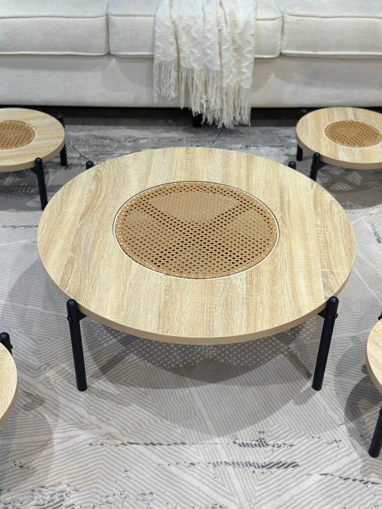 - طقم طاولات ضيافة أرضي خشب بني راتان :