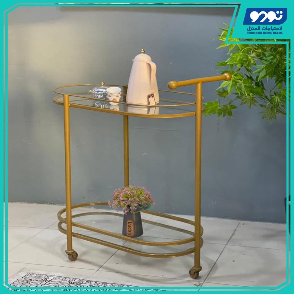 عربيه تقديم حديد تتميز بحجم مثالي تتناسب مع المساحات المختلفة في الأماكن ، تعتبر قطعة مهمة في كل منزل أو فندق حيث تستخدم في التقديم وتتميز بوجود عدة عجلات لسهولة نقلها في أي مكان . تتميز بأرجل حديد وسطح من الزجاج القوي ليتحمل التحميل عليه .