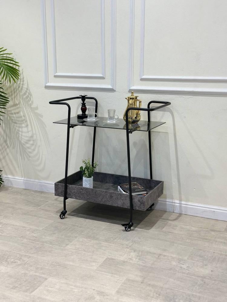 تتكون من ثنائية أدوار رحبة توفر مساحة مثالية لترتيب المشروبات، الحلويات، أدوات التقديم أو حتى الديكورات الصغيرة، مما يجعلها خيارًا مثاليًا للاستخدام اليومي أو المناسبات الخاصة.