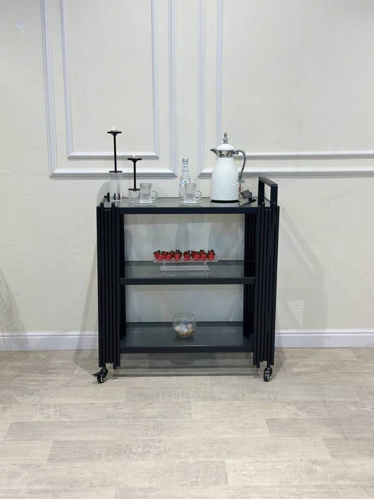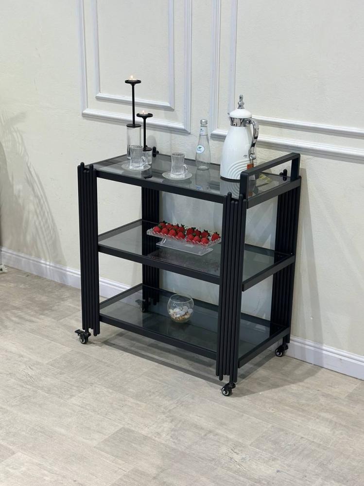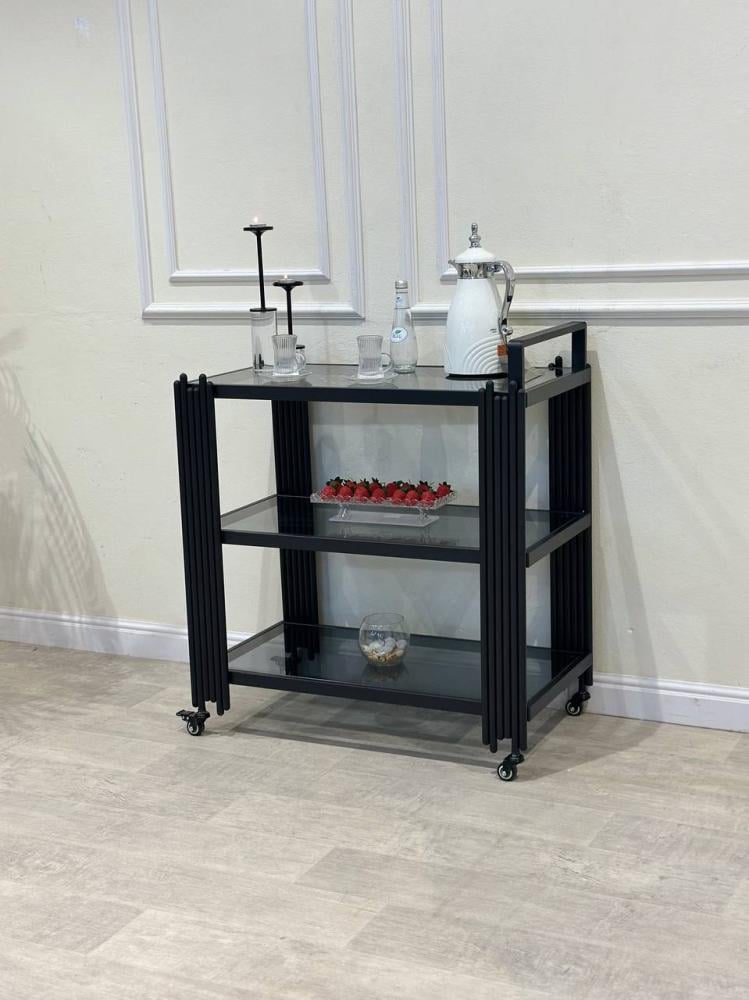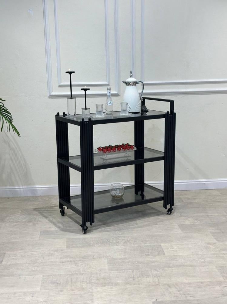 - عربية تقديم بثلاثة أدراج بزجاج أسود بتصميم عصري فاخرالمواد: