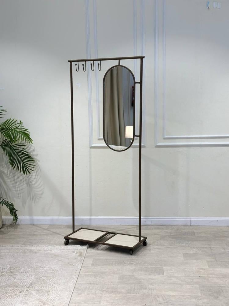 علاقة ملابس مع مرآة – بتصميم راقٍ وقاعدة رخام مقسمة