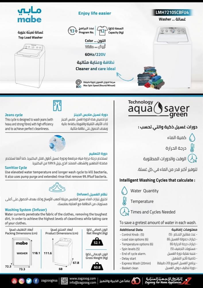- دورات غسيل ذكية والتي تحسب كمية الماء ودرجة الحرارة والوقت