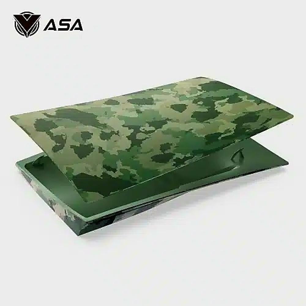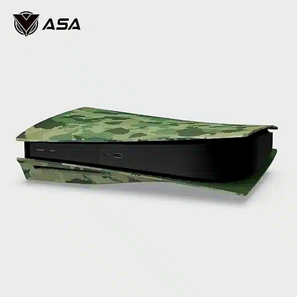 غلاف لجهاز البلايستيشن 5 نسخة الديجيتال بتصميم جيشي اخضر يتميز بأناقته وألوانه الزاهية. يتميز الغلاف بتصميم مميز يجمع بين اللون الأخضر الجذاب والخطوط الحديثة التي تضفي عليه لمسة عصرية. يحمل الغلاف شعار البلايستيشن 5 بشكل واضح وجذاب،