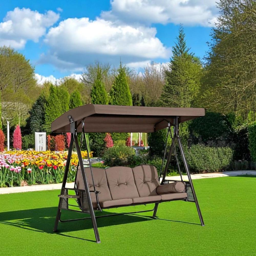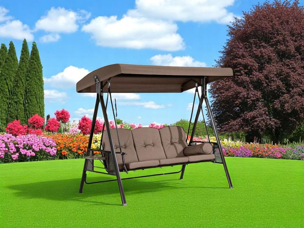 كرسي مرجيحه للحديقة بثلاث مقاعد مع مظلة