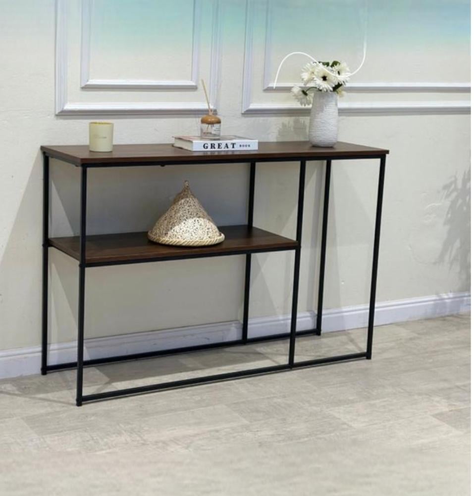 يُضفي هذا الكونسول الخشبي البني لمسة من الفخامة الدافئة على مدخل منزلك، بتصميمه العصري المكون من دورين عمليين يقدّمان مزيجًا مثاليًا بين الجمال والوظيفة.