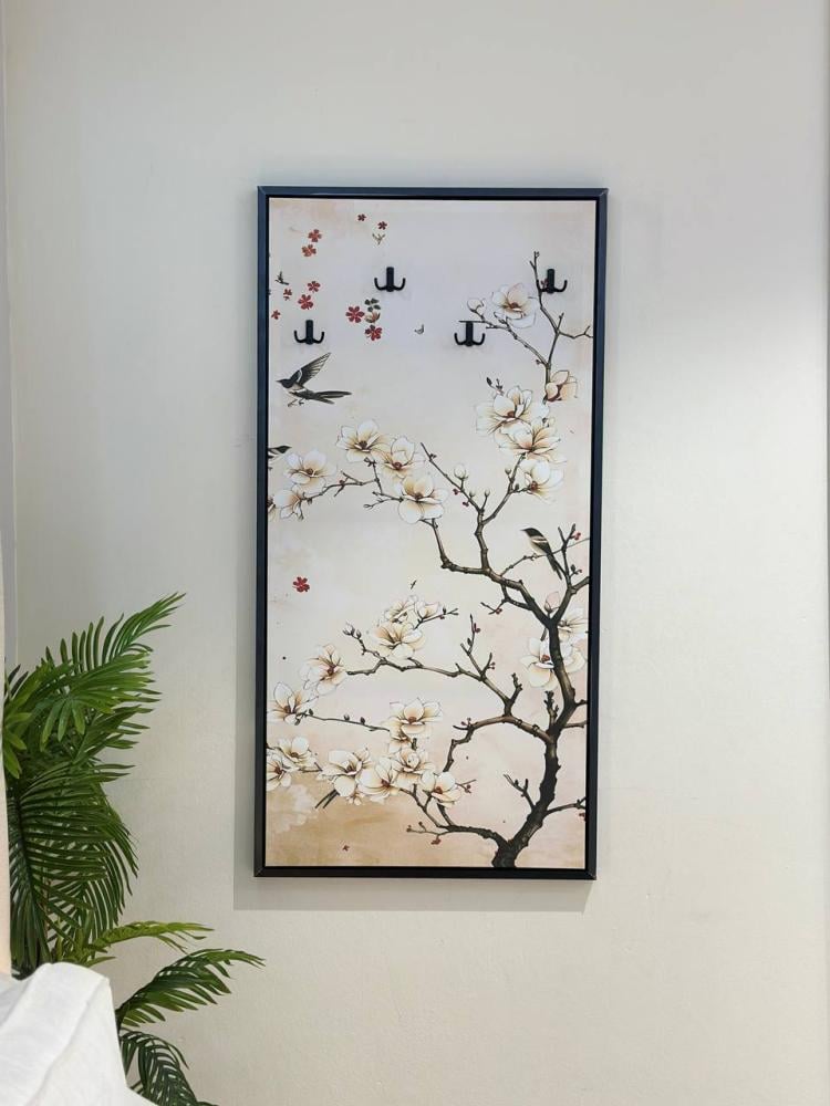 احصل على قطعة ديكور عملية وفنية في آنٍ واحد مع لوحة جدارية تجمع بين الجمال والفائدة، تأتي بتصميم أنيق يدمج بين لوحة حائطية مميزة مع علاقات ملابس أو مفاتيح مدمجة، مثالية للمداخل أو غرف الملابس.