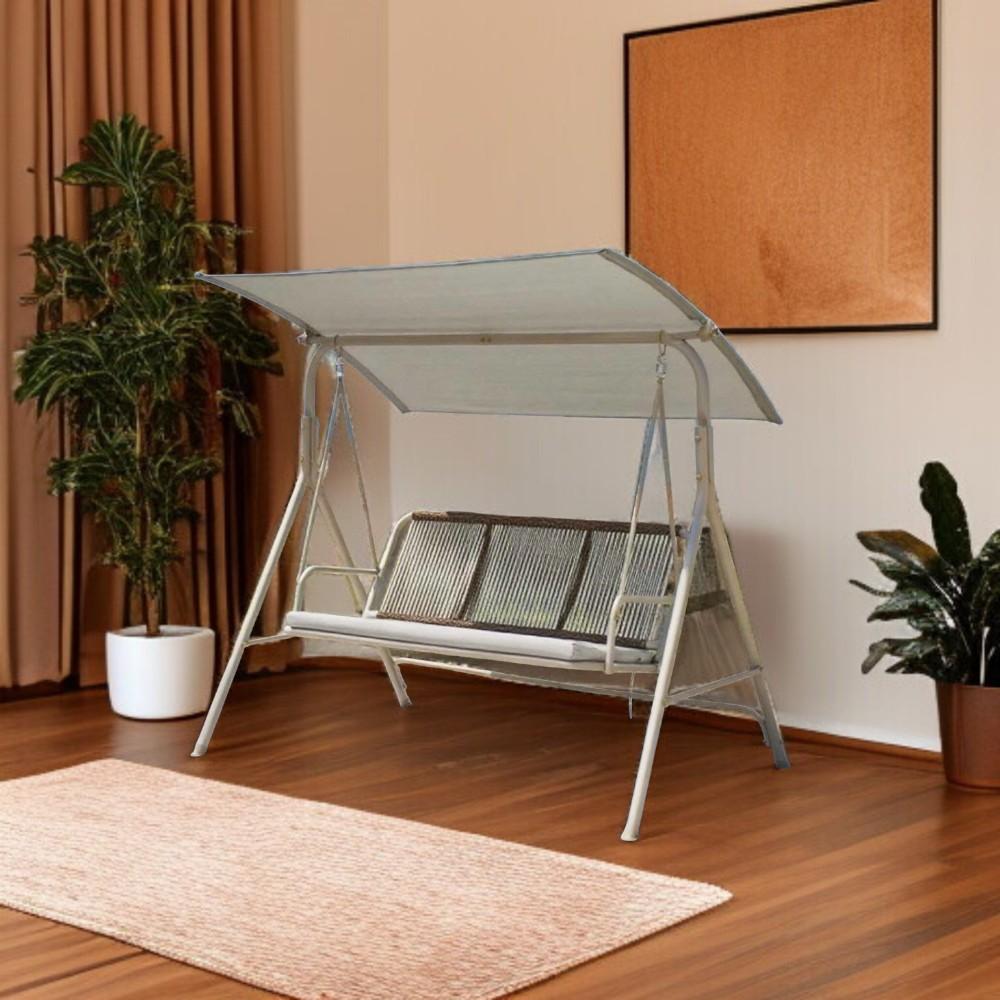 استمتع بلحظات من الراحة والاستجمام في الهواء الطلق مع المرجيحة الخارجية الفاخرة المصممة لتتسع لثلاثة أشخاص، بتصميم يجمع بين الأناقة العصرية والراحة الفائقة.