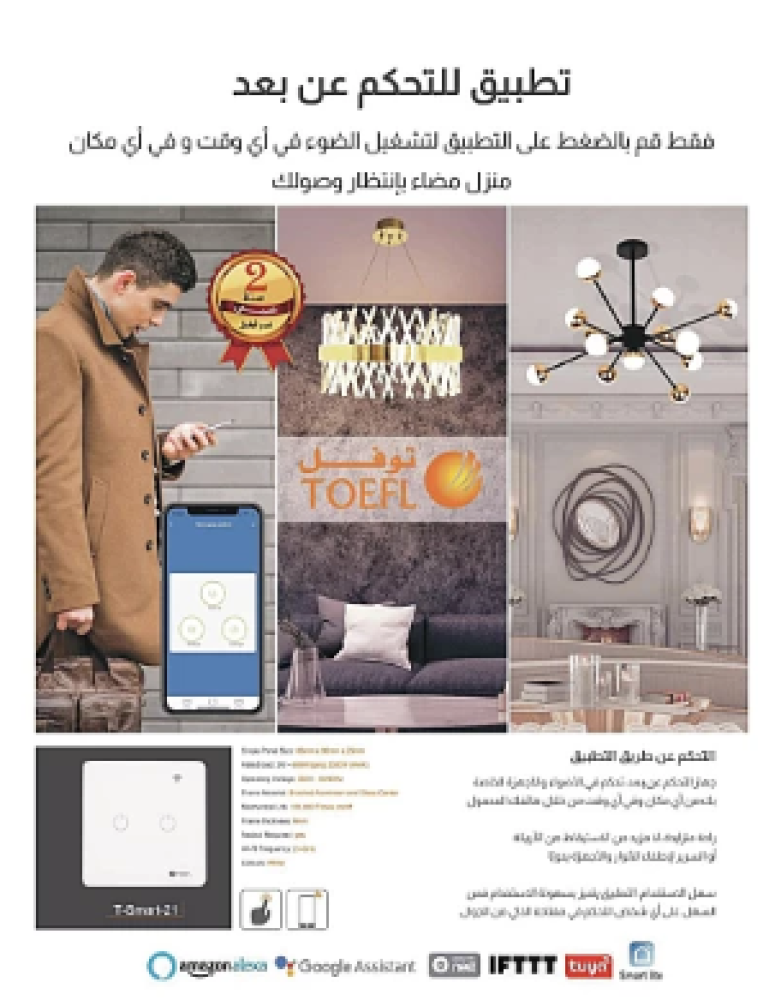 جرب الراحة والتحكم الكامل بمنزلك من أي مكان في العالم، احصل على مفتاح الحائط الذكي اليوم واستمتع بتجربة المنزل الذكي السهلة والمريحة!