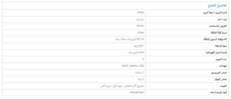 - الاستهلاك السنوي للطاقة: 5513.4 كيلو وات ساعة/سنة